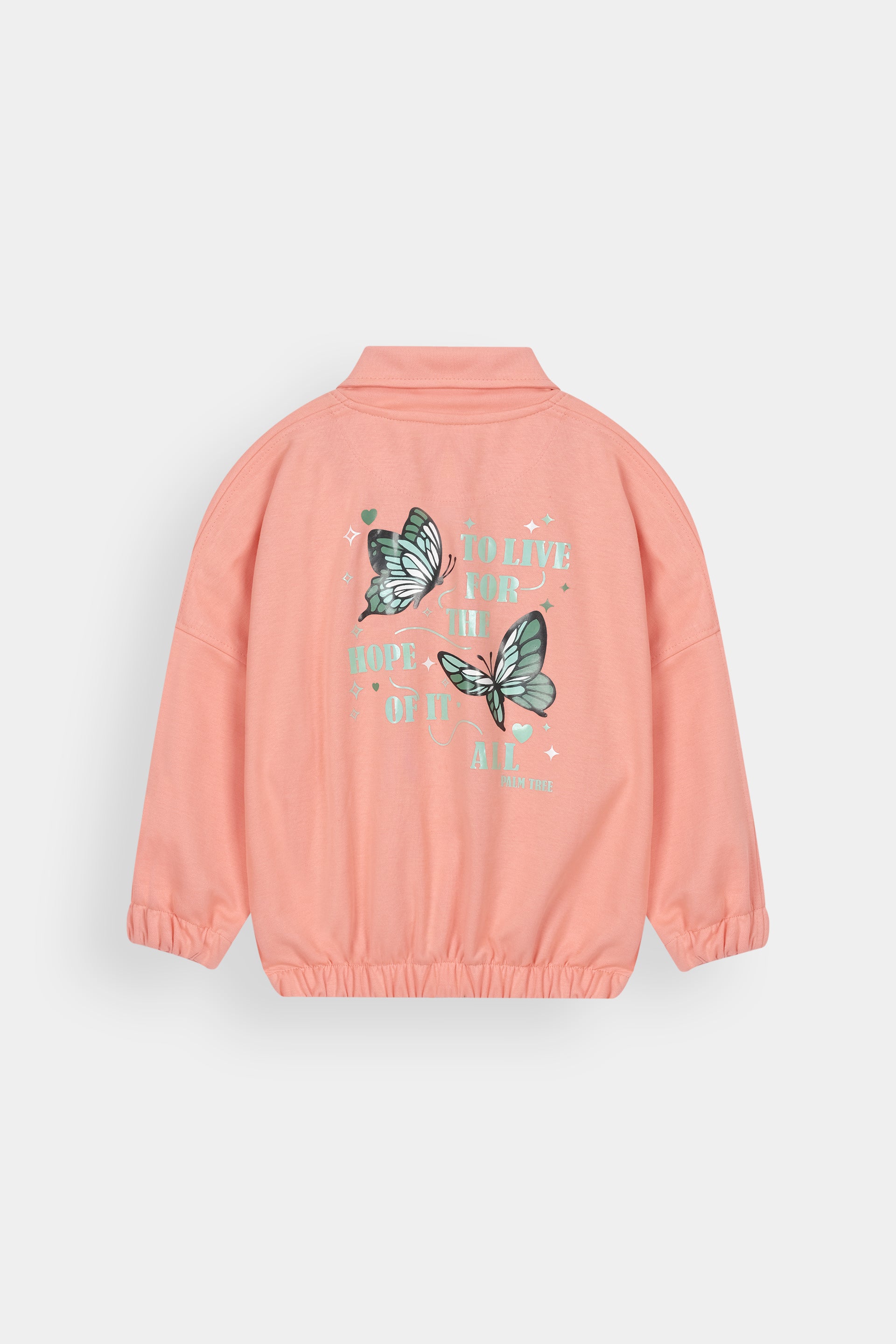 Elevate your daughter's casual wardrobe with this charming peach track suit, featuring a classic polo collar and delicate butterfly print design. Crafted for comfort and style, the two-piece set combines breathable fabric with a flattering fit, making it ideal for everyday wear, outdoor activities, or relaxed social gatherings. The soft peach hue complements various skin tones, while the playful butterfly motif adds a touch of personality. Perfect for girls who appreciate both comfort and contemporary fashion, this versatile track suit transitions seamlessly from playtime to casual outings.